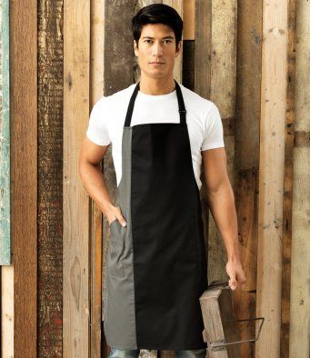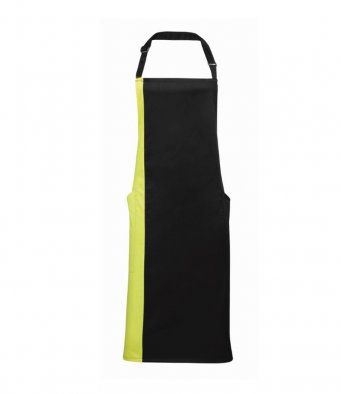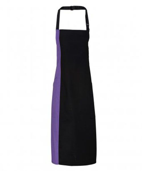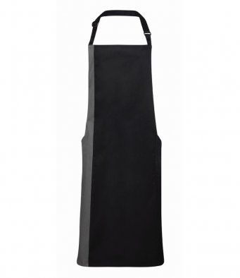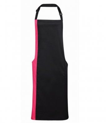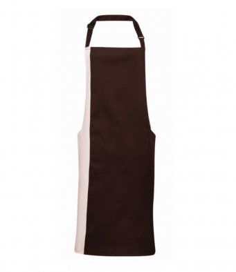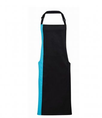 A classic full bib apron with a contrast coloured panel appearing along the length of the right hand side. The colours used on this apron form part of the 'Colours' collection from Premier, so the customer can be assured of an exact colour match in uniforms across their service teams.