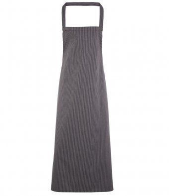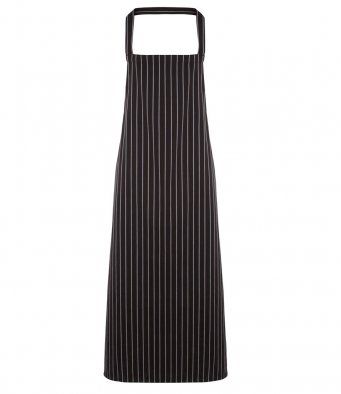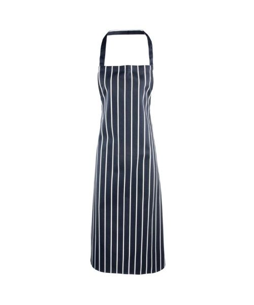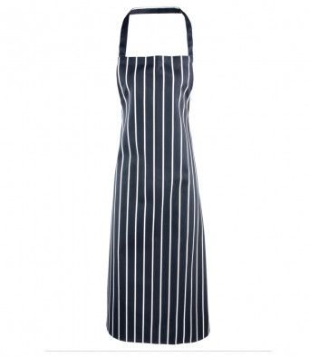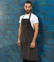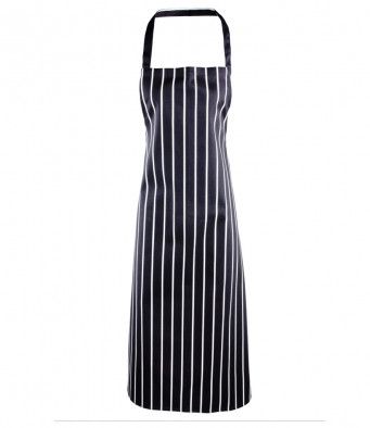 A popular choice for chefs, this full bib apron has 'Butcher's' style stripes down the length of the apron and across the neckband and ties. A traditional favourite amongst catering professionals.