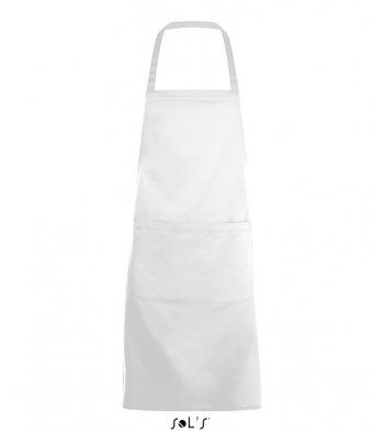 Polycotton Bib apron with large front pocket and self fabric neck tie.