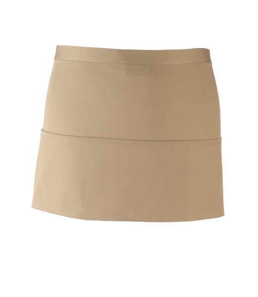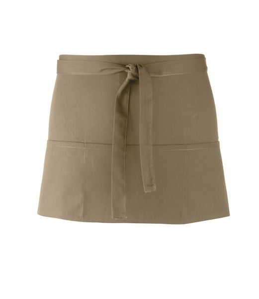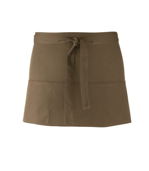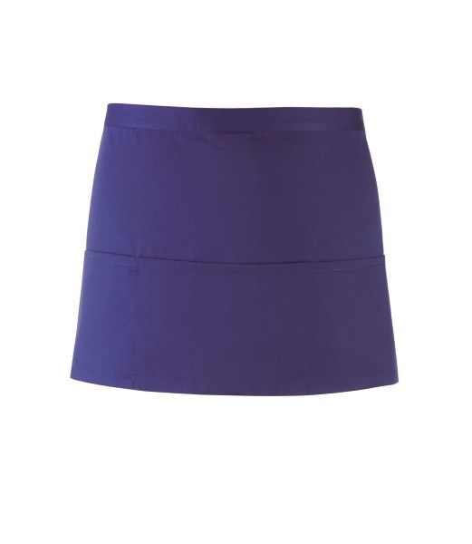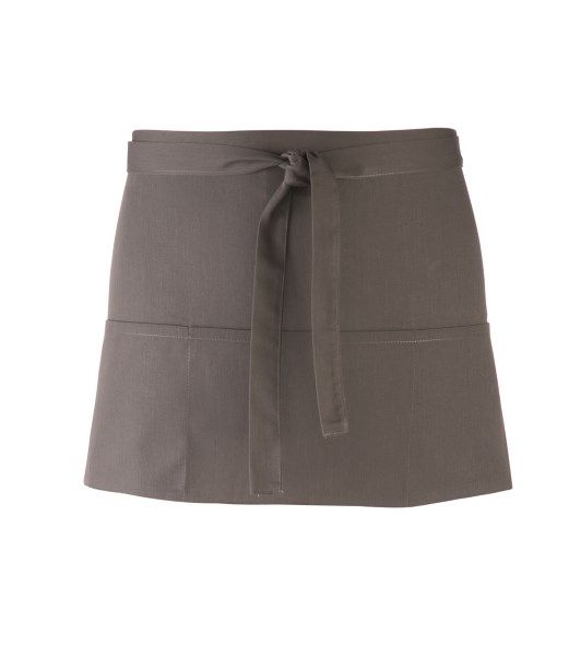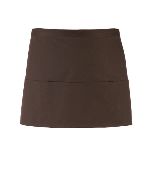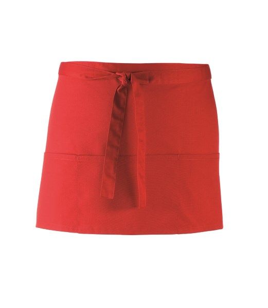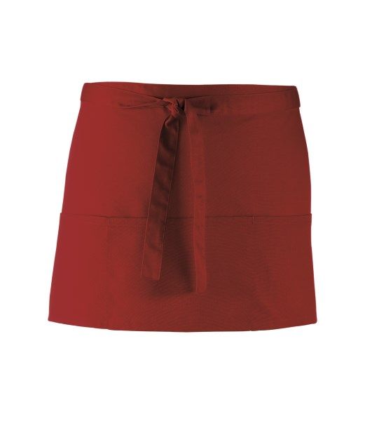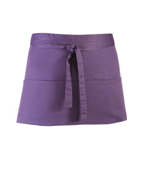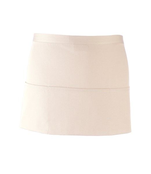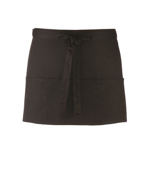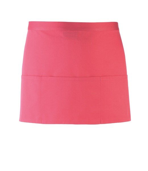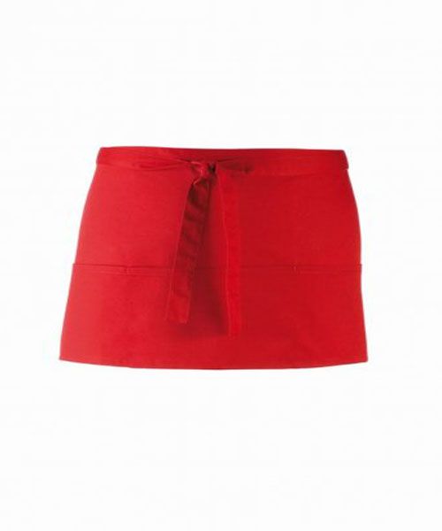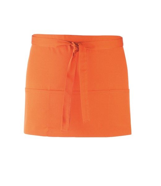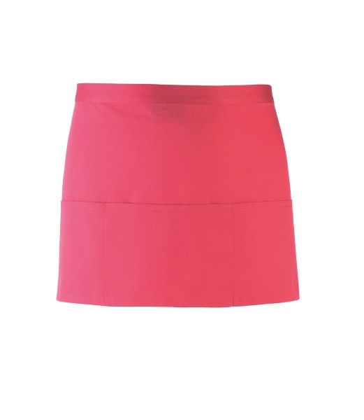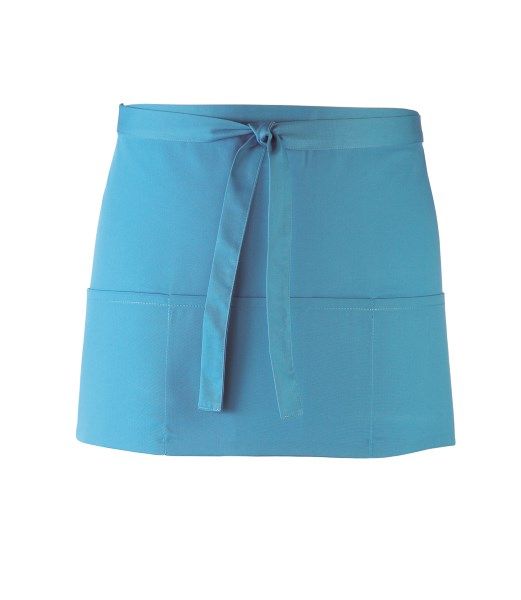 A popular style of apron seen in many bars and restaurants, this short waist apron has three open pockets and comes in 28 colours from the Premier 'Colours' collection. The pockets are great for carrying payments terminals and tablet devices.
