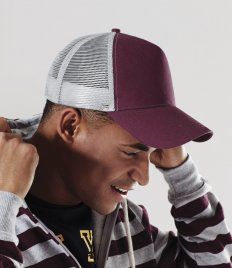 100% polyester nylon mesh rear panels. Retro-style, snap-back size adjuster.