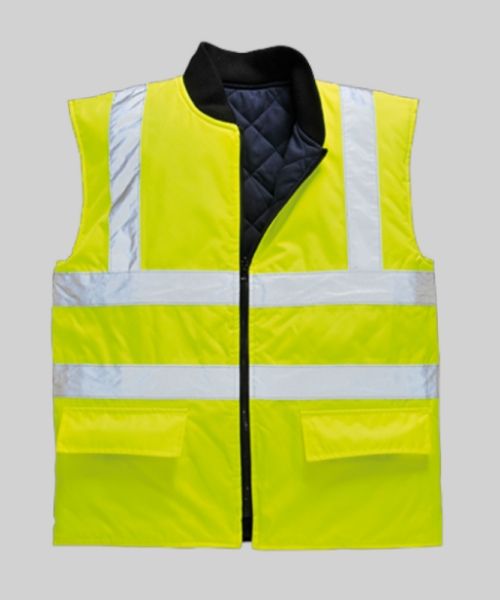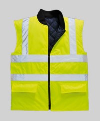 This cleverly designed, padded garment traps heat to keep you warm when worn either way. The Hi-Vis side of the garment provides added visibility and safety for the wearer when needed.
