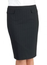 Straight skirt with stretch lining, a detailed waistband, 2 mock pockets and a centre vent.