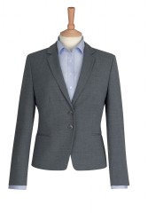 Short, slim fit two button jacket with cutaway front, slim notch lapel, front breast darts, jetted pockets, a plain back, tailored back panels and one inside pocket.