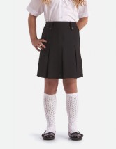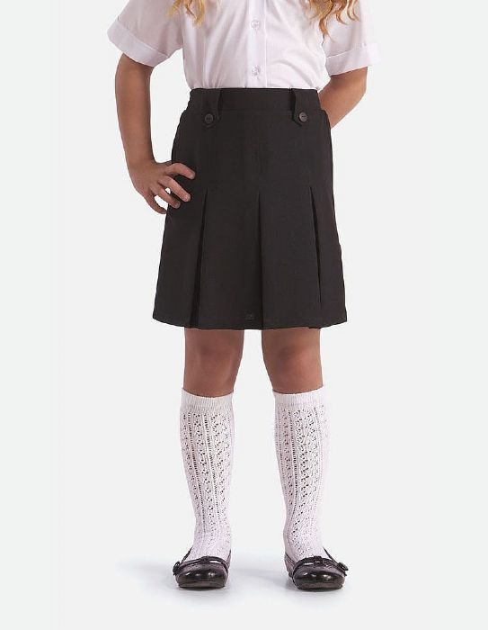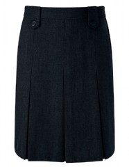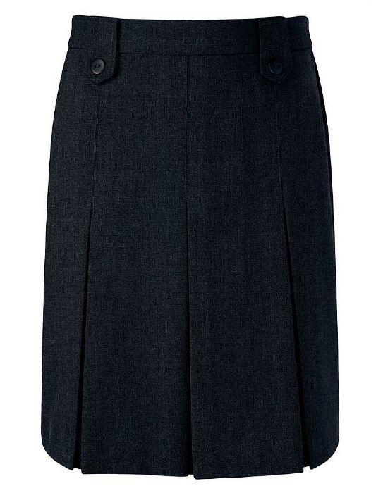 Pull on all-round pleated skirt with stitch down inverted pleats and tab detail at waist. Teflon finish