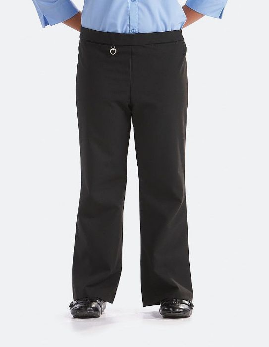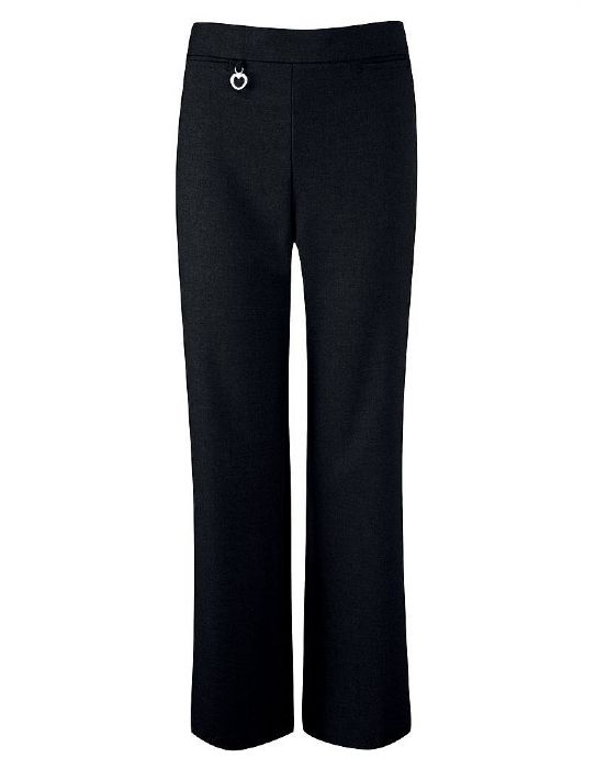 Stylish and comfortable pull on trouser with 2 front pockets and elasticated back. Attached to the front is a novelty charm.