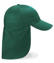 Elasticated back. Half moon buckram flap. Flap protects neck and ears.