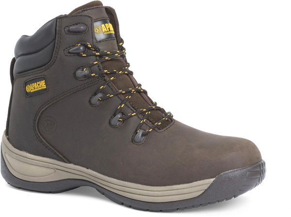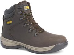 Full grain brown nubuck safety hiker. Water resistant upper. Padded tongue and collar for added comfort. Steel toe cap protection and composite midsole protection. Lightweight phylon/rubber outsole. A popular modern styled boot for all trades.