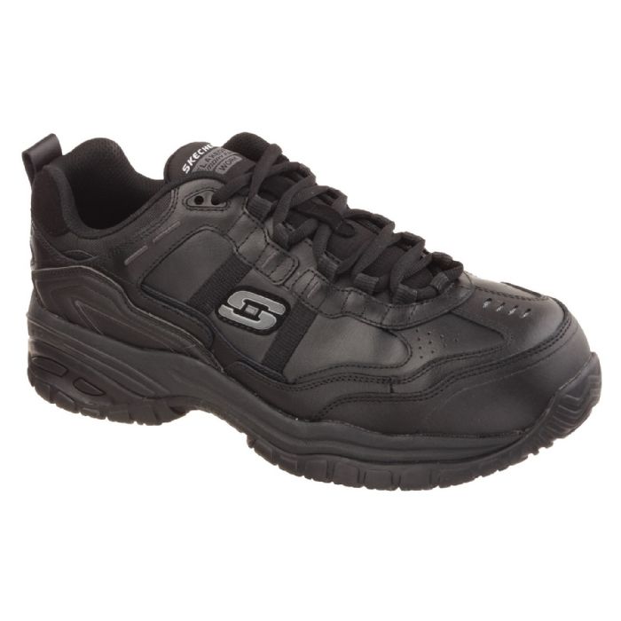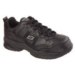 Believe in comfort and protection with SKECHERS Soft Stride-Grinnell Comp shoe - Smooth oiled suede, synthetic mesh fabric upper in a lace up sporty casual comfort work composite toe sneaker with stitching accents and Memory Foam. EC Specific design