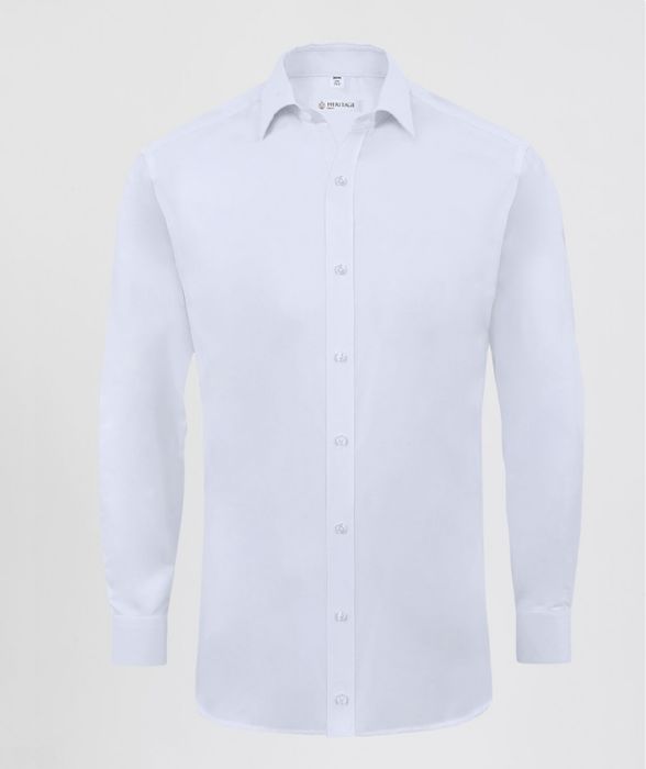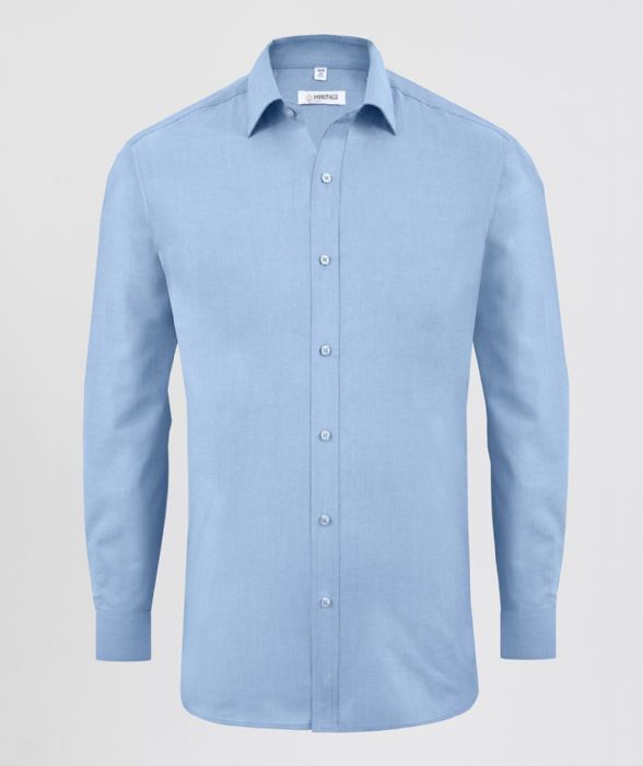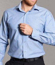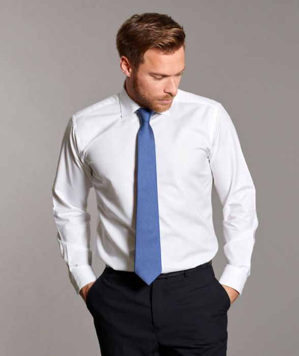 Oxford shirt with cutaway collar, long sleeve with twin button adjustable cuff.