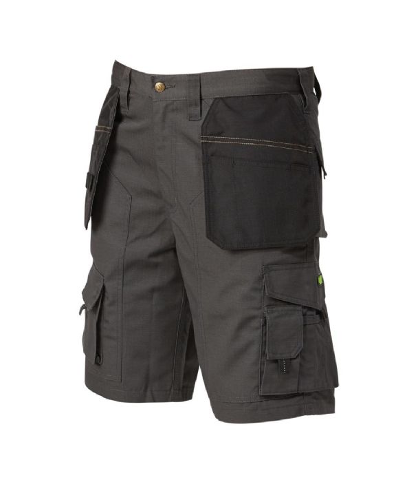 A lightweight Rip-Stop polycotton work short with Cordura holster pockets. A low rise comfort fit waist. Two rear Velcro pockets. Side cargo pocket to left leg and large phone pocket to right leg. Tunnel belt loop and YKK zip. A good functional work short for those warmer days.