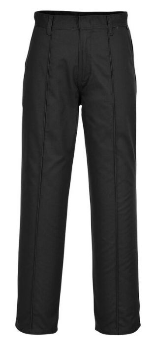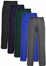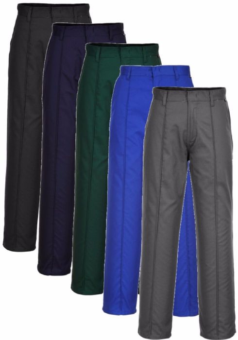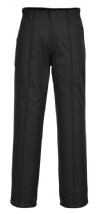 This classic style is durable and comfortable with a sewn in front crease which adds to the professional look. Features include two side pockets and a back jetted pocket.