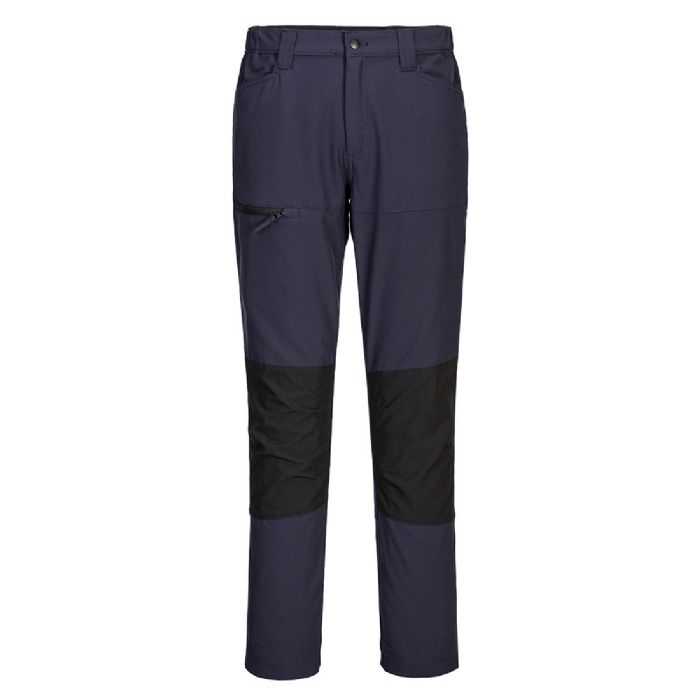 The 4 pockets provide excellent storage without adding bulk to the garment. Side elastic and 4 way stretch provide superior comfort and suitability on this work trouser and all in a recycled polyester.